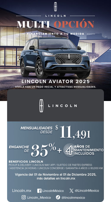 Con el fin de proveerle un servicio o un bien, así como hacer válida la garantía de su vehículo, realizar actividades de promoción y hacerle llegar información de nuestros socios de negocios, Lincoln podrá transferir sus datos personales tanto dentro como fuera de los Estados Unidos Mexicanos a sociedades subsidiarias, afiliadas o relacionadas con Lincoln, sus distribuidores autorizados y/o sus terceros proveedores de servicios con quienes tiene una relación jurídica, así como a autoridades competentes. No será necesario el consentimiento de los clientes o clientes potenciales de Lincoln cuando las transferencias se realicen a sociedades del mismo grupo de Lincoln o cuando dicha transferencia sea necesaria para prestarle un bien o servicio o mantener actualizados nuestros registros para responder sus consultas, hacer válida la garantía de su vehículo o hacerle llamados para revisión de su vehículo derivado de la relación comercial.